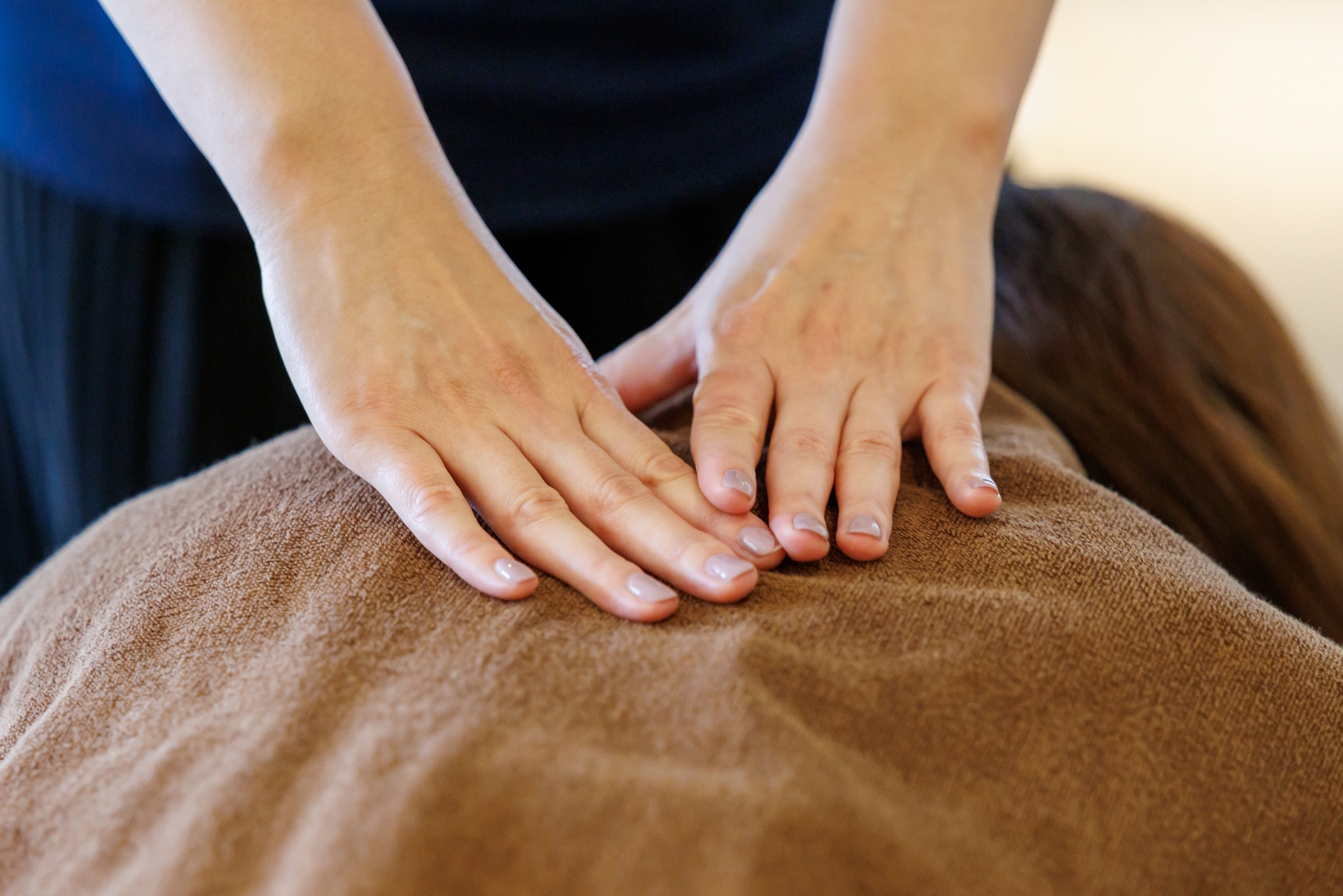 施術では、やさしく手を当てたり、手をかざしたりしながら、